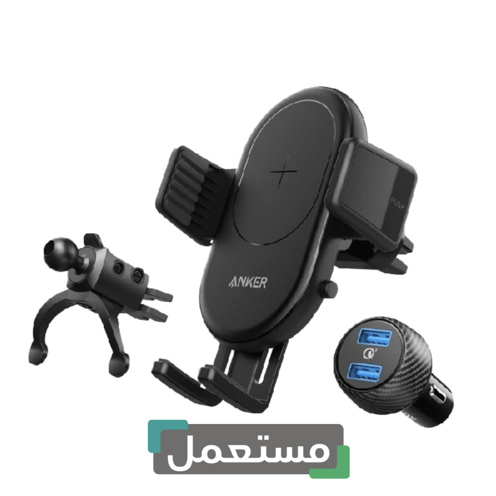 أنكر - شاحن سيارة وحامل جوال للسيارة بقوة شحن لاسلكي 7.5 واط بمنفذين USB - اسود - مستعمل