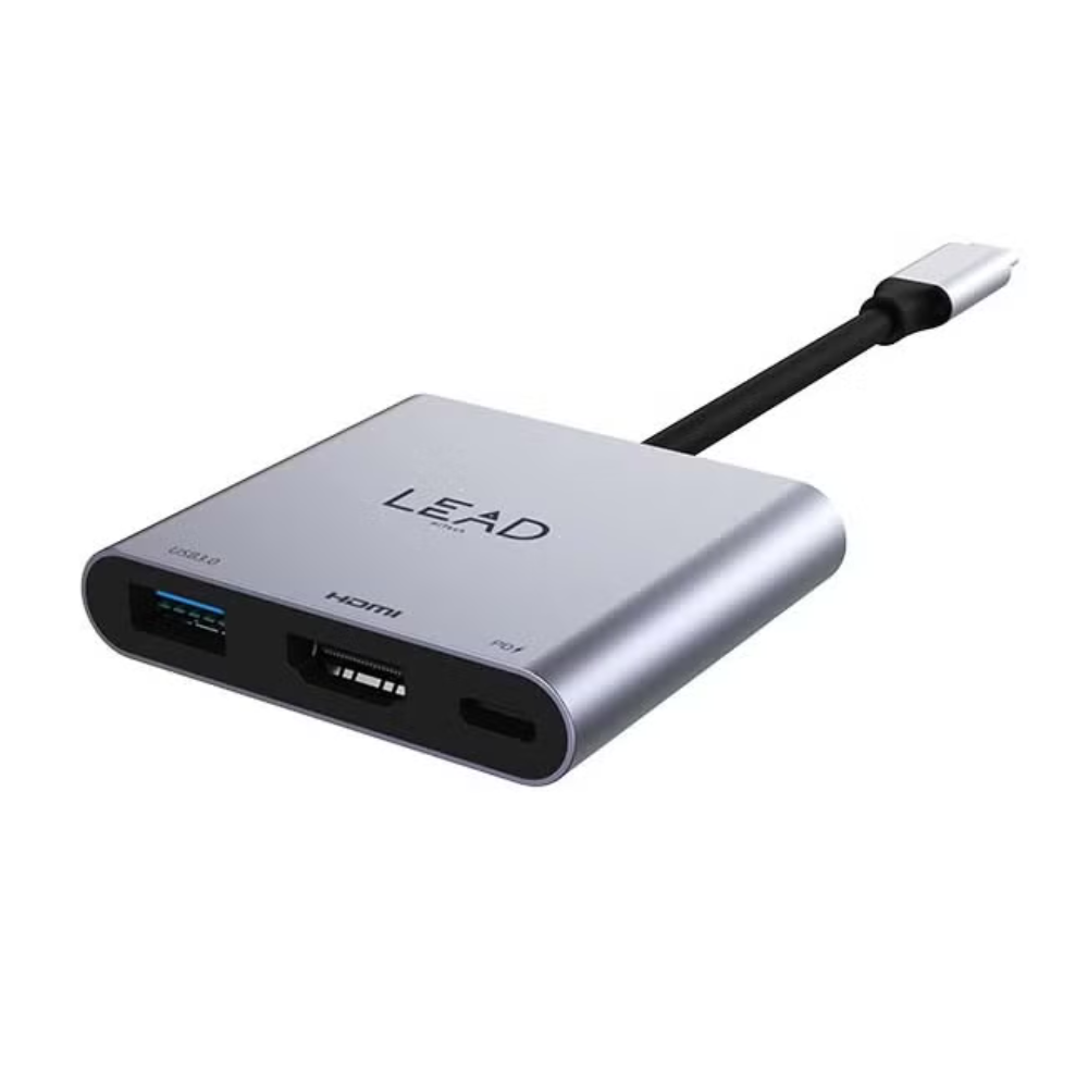 لييد محول نقل بيانات USB-C و 3 مخارج بقدرة 60 واط - رمادي